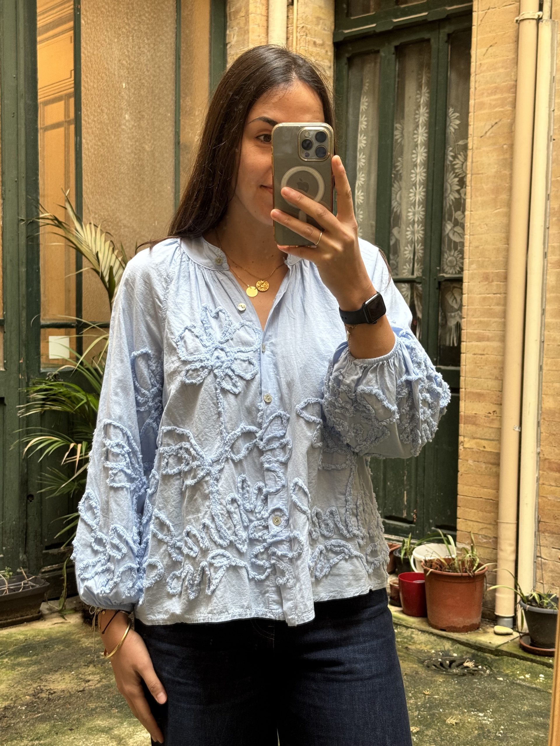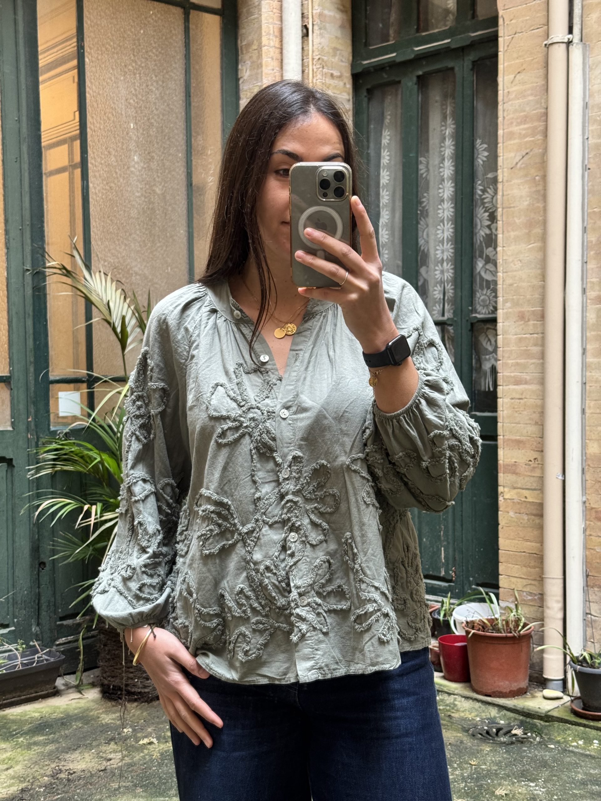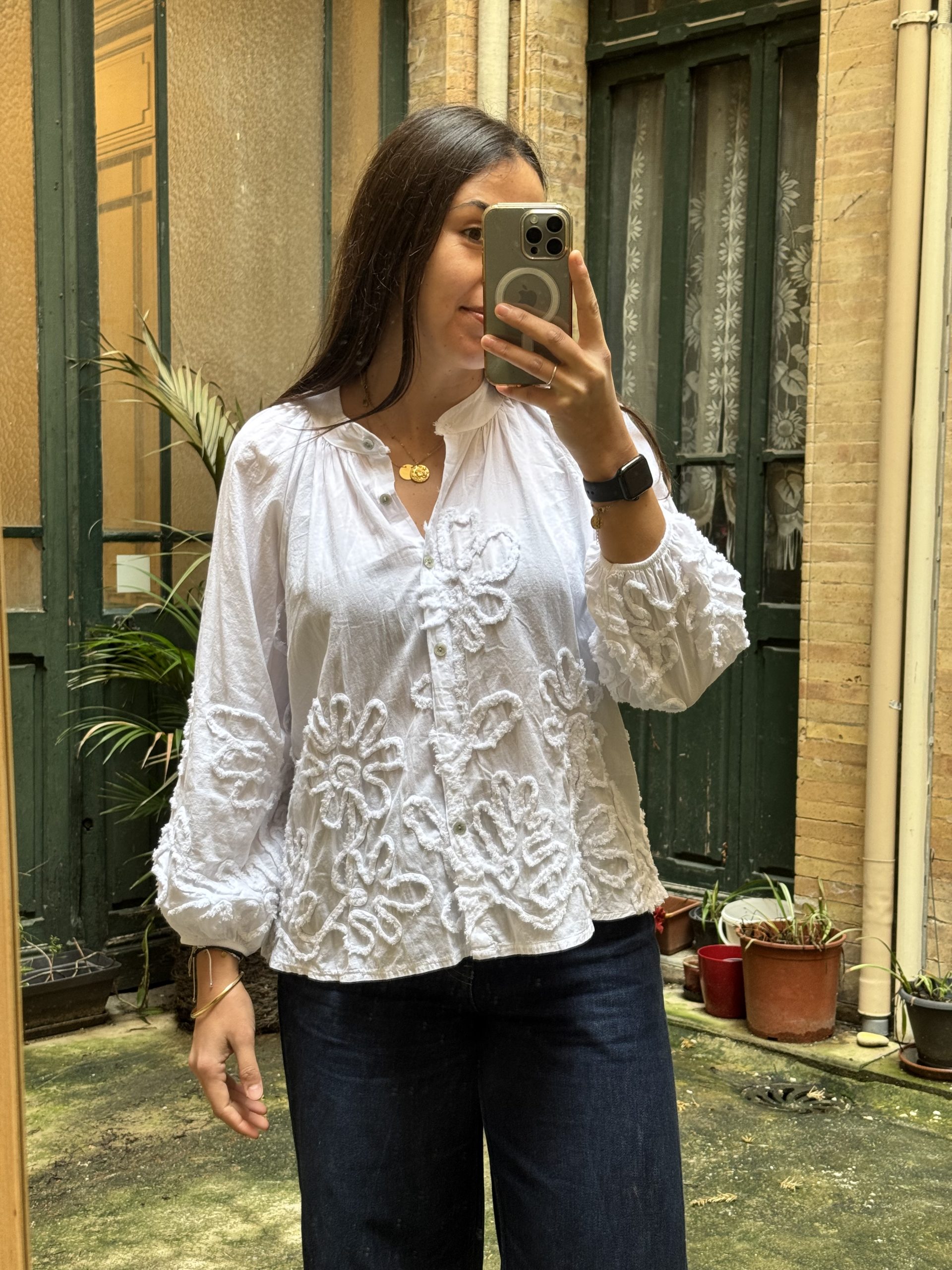 Chemisier à boutons bohème broderie fleurs