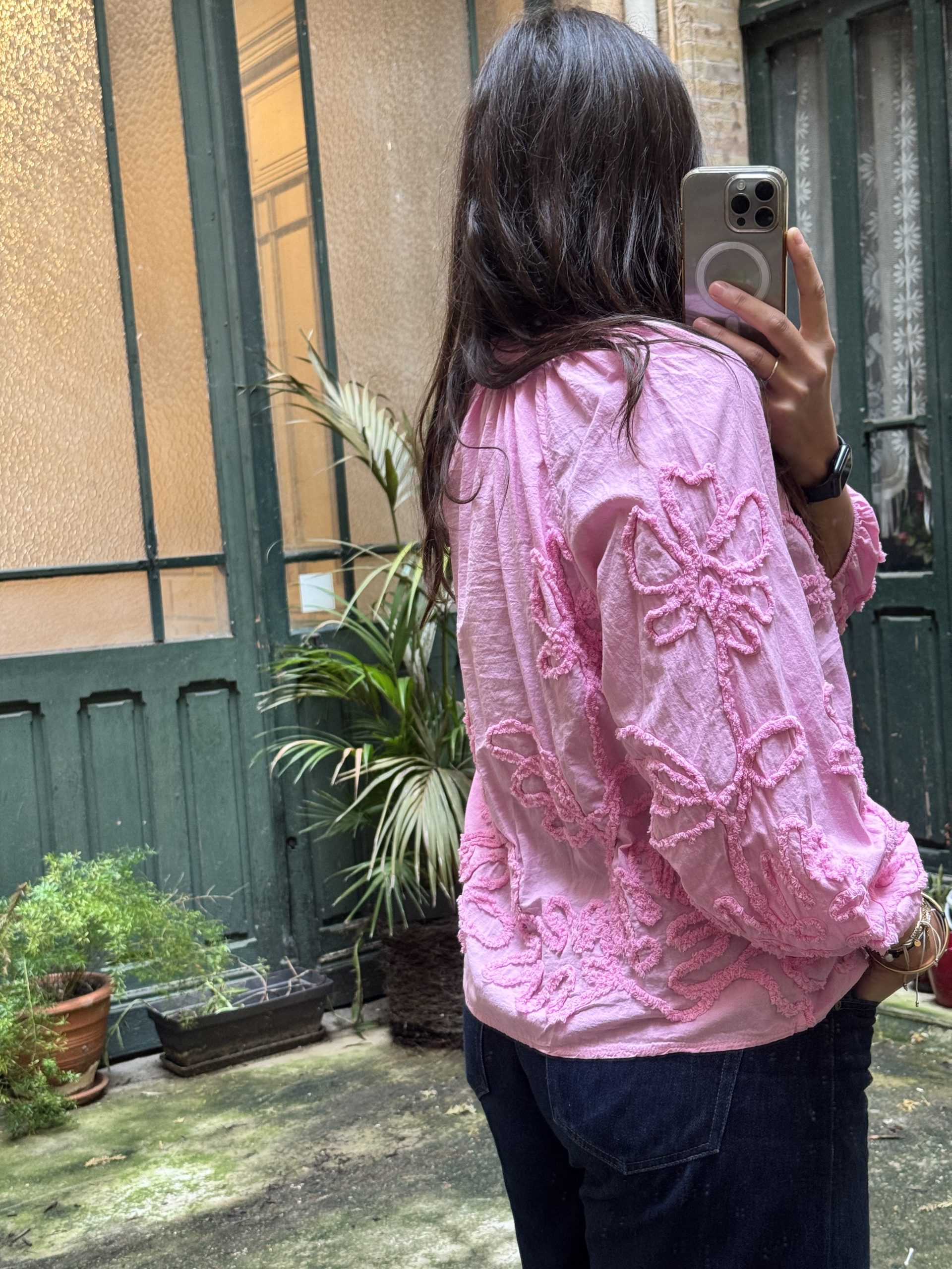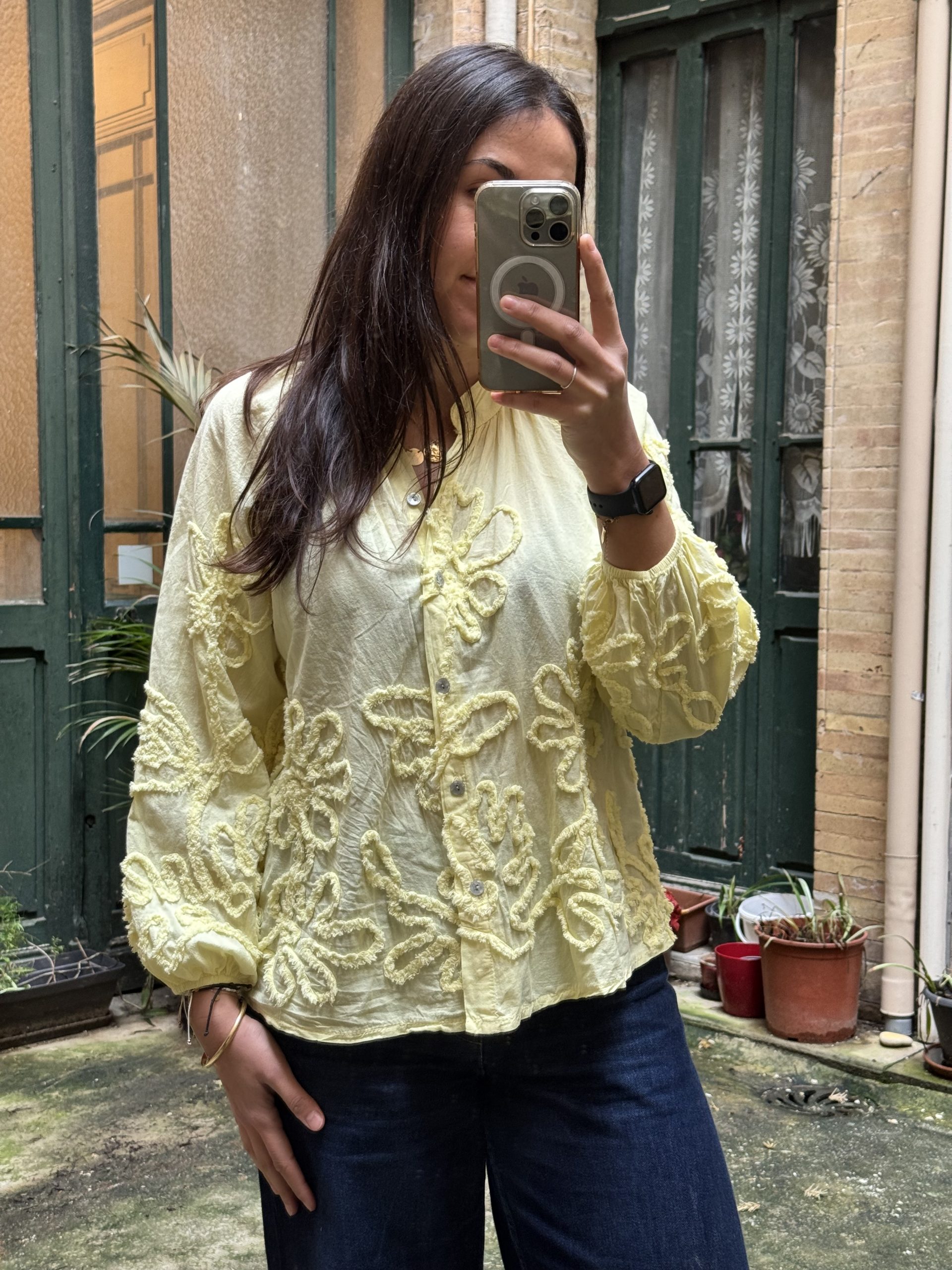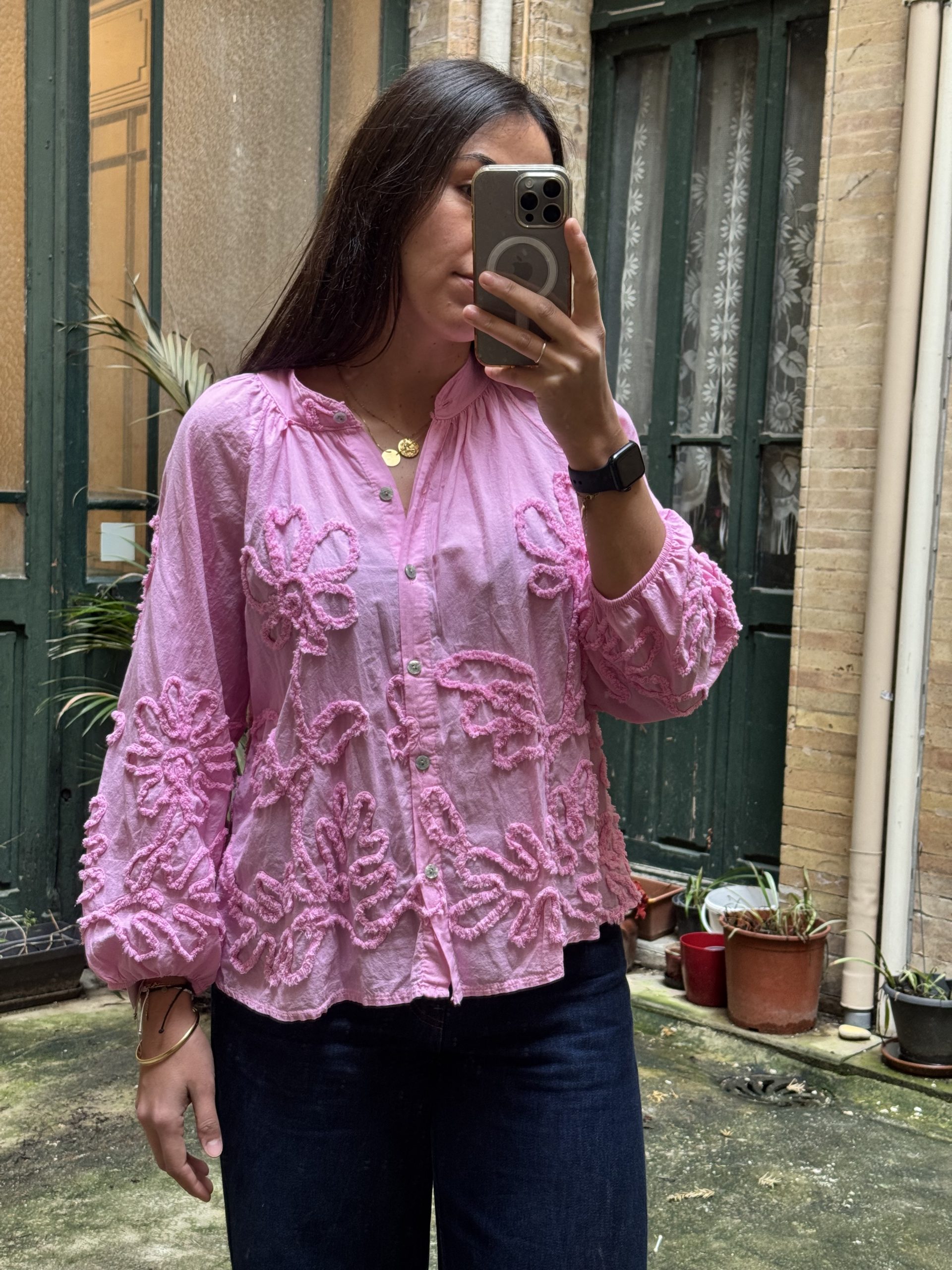 Chemisier à boutons bohème broderie fleurs