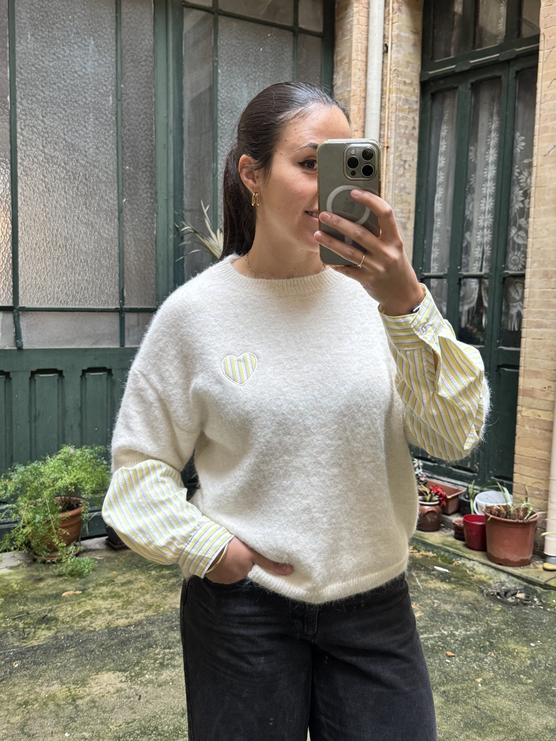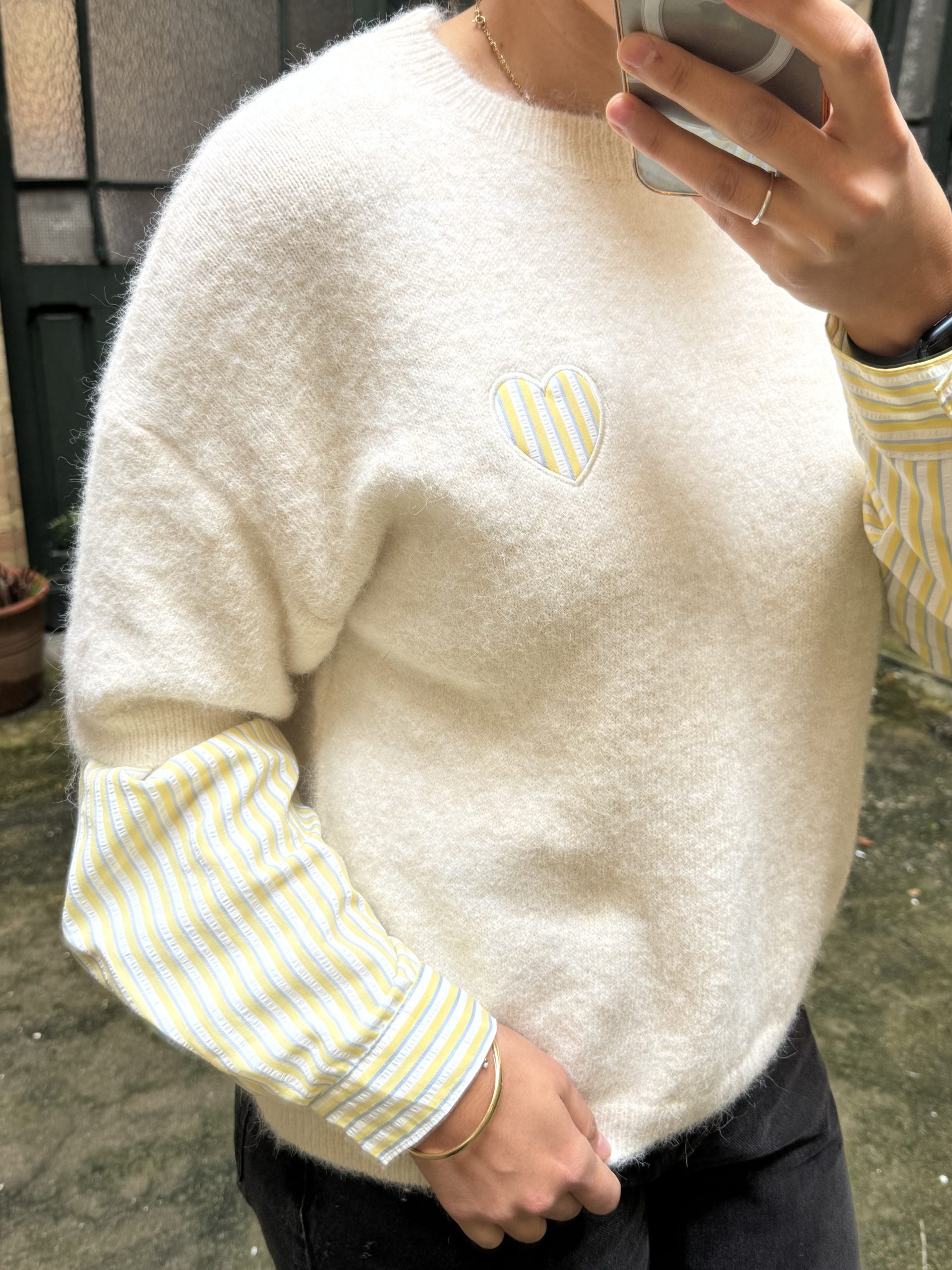 Pull col rond coeur et chemise